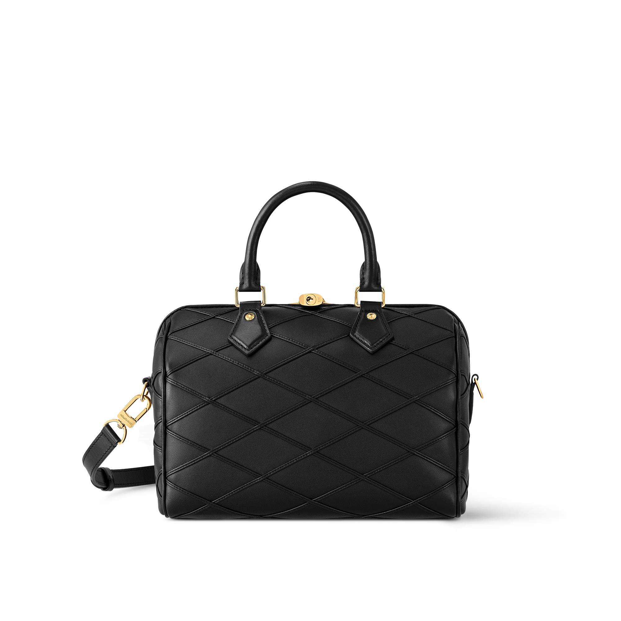 กระเป๋าถือรุ่น Speedy Bandoulière 25 ขนาดกะทัดรัด รังสรรค์จากหนัง Monogram Empreinte สีดำประทับลาย Monogram สีเบจขนาดโอเวอร์ไซส์ กระเป๋าถือดีไซน์มีระดับได้แรงบันดาลใจจากกระเป๋ารุ่น “Express” จากปี 1930 ของหลุยส์ วิตตอง ประดับฮาร์ดแวร์สีทอง ด้านในบุสีแดง หูจับด้านบนกับสายสะพายแบบถอดออกและปรับความยาวได้เพิ่มสไตล์ในการพกพาให้หลากหลายขึ้น