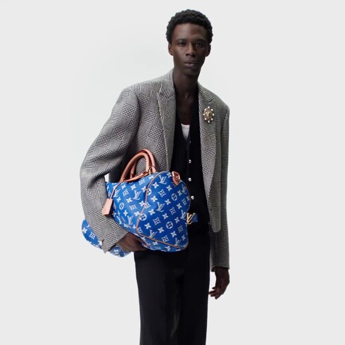 Pharrell Williams ครีเอทีฟไดเร็กเตอร์ออกแบบกระเป๋ารุ่น Speedy P9 Bandoulière 40 Monogram Leather ให้มีสัมผัสนุ่มเป็นพิเศษ โดยเลือกใช้หนังลูกวัวลายเกรนเนื้อนุ่มตามธรรมชาติ พิมพ์ลาย Monogram บนหนังสีสดใสด้วยเทคนิคซิลค์สกรีนระดับไฮเอนด์ พร้อมสรรค์สร้างลาย Monogram เอฟเฟ็กต์อ่อนจางรูปแบบใหม่พิมพ์ลงบนวัสดุแคนวาสอย่างลงตัว กระเป๋ารุ่น Speedy บุด้านในด้วยหนังแกะหรูหราเหนือระดับ