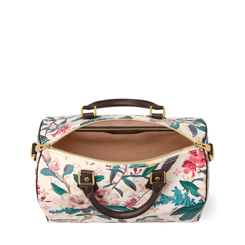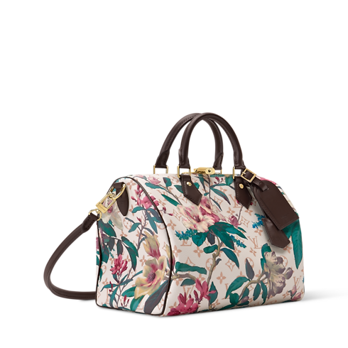 กระเป๋ารุ่น Speedy Soft 30 ที่ออกแบบมาเพื่อช่วยให้การเดินทางสะดวกยิ่งขึ้น ในเอดิชัน Monogram Eden ได้เติมกลิ่นอายธรรมชาติงดงามผ่านลวดลายดอกไม้และสัตว์น้อยอันอ่อนหวาน ผลงานชิ้นนี้รังสรรค์จาก Monogram Dune แคนวาส ประดับที่ห้อยกุญแจและเนมแท็กหนังสีดำตัดกันอย่างมีสไตล์ ภายในกระเป๋าตกแต่งช่องกระเป๋ามีซิปสำหรับเก็บสิ่งของมีค่าได้อย่างปลอดภัย มาพร้อมสายสะพายถอดออกได้สำหรับสะพายไหล่ได้อย่างเหนือระดับ