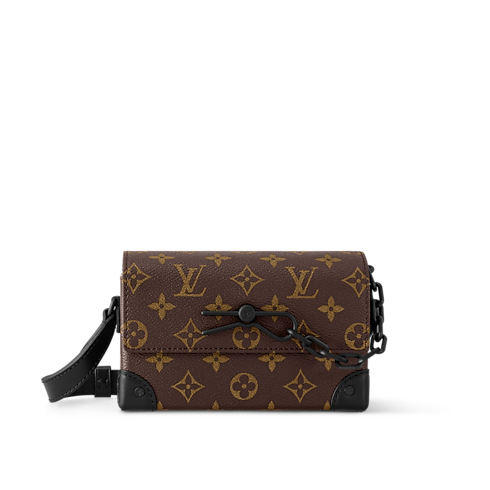 กระเป๋าสตางค์แบบสะพายรุ่น Steamer รังสรรค์จาก Monogram Macassar แคนวาสแต่งมุมเสริมความแข็งแกร่งและประดับสายสะพายปรับความยาวได้ในเฉดสีที่สื่อถึงความมีชีวิตชีวา ตกแต่งตัวล็อกสายโซ่ผสานพินสีเงินอันเป็นเอกลักษณ์ดั้งเดิมประจำกระเป๋ารุ่น Steamer พร้อมบุด้านในด้วยผ้าลายทางเฉดสีเดียวกับสายสะพายอย่างลงตัว