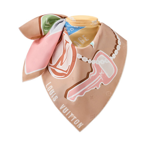 ผ้า Square รุ่น Tag And Go ผ้าไหมทั้งผืนอุทิศให้แก่มรดกแห่งงานฝีมือของเมซงสุดครีเอทีฟและถ่ายทอดศิลปะแห่งการเดินทาง ลายพิมพ์สองด้านอันซับซ้อนผสานแท็กกระเป๋าเดินทางเข้ากับกุญแจที่ชวนให้นึกถึงนวัตกรรมตัวล็อกของทรังก์ที่คิดค้นโดยหลุยส์ วิตตองด้วยตนเอง แอคเซสเซอรี่เพิ่มสัมผัสแห่งสีสันและสัญลักษณ์ความสง่างามให้กับทุกลุคอย่างสมบูรณ์แบบ