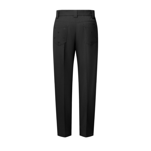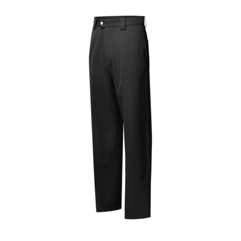 กางเกงทรง Carpenter สีดำสวมใส่ได้หลายโอกาส นำสไตล์ Workwear คลาสสิกมาปรับดีไซน์ใหม่ให้ดูสง่างามคอมพลีตลุคสมาร์ทแคชวล กางเกงพอดีตัวสไตล์ Double Knee รังสรรค์จากผ้าวูลทวิลเปี่ยมคุณภาพแบบเทเลอร์ กระเป๋าหลังปักสัญลักษณ์ LV Blason ด้วยด้ายเงางามโทนสีเดียวกันเสริมความมีระดับ ประดับกระดุมเอฟเฟ็กต์ไข่มุกเติมแต่งสัมผัสสุดเท่อย่างมีสไตล์