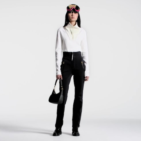 กางเกงสกีขาบานเอวสูงเข้ารูปผ้าเจอร์ซีย์เทคนิคอลสวยสง่าสไตล์สปอร์ต ดีไซน์ขากว้างเสริมให้รูปร่างดูสูงโปร่ง กระเป๋ากางเกงมีซิปตอบโจทย์การใช้งาน มาพร้อมดีเทลซิปที่ข้อเท้าเลือกสวมใส่ได้หลายสไตล์ หัวซิปกราฟิกสัญลักษณ์หลุยส์ วิตตองคอมพลีตลุคลงตัว