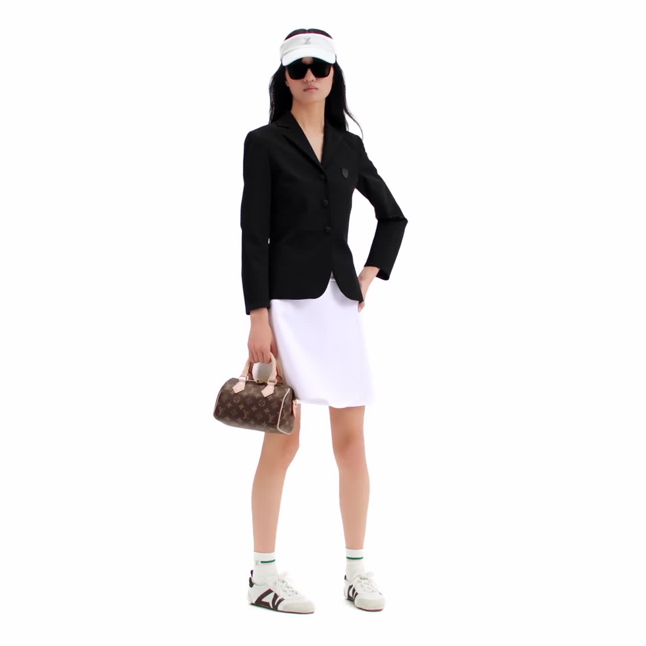 กระโปรงมินิสเกิร์ตผ้าเจอร์ซีย์เทคนิคอลอันเป็นเอกลักษณ์ของเมซง มอบลูกเล่นสไตล์สปอร์ตร่วมสมัยเปี่ยมชีวิตชีวา กระโปรงทรงเอคมชัดโดดเด่นด้วยขอบโค้งแบบป้ายด้านหน้า มาพร้อมกระดุมสแน็ปสีทอง 4 เม็ดบริเวณขอบเอว เพิ่มกลิ่นอายเมทัลลิกคอมพลีตลุคสุดชิคลงตัว