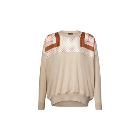 สัมผัสความสง่างามเหนือระดับกับเสื้อพูลโอเวอร์ทรงหลวมสุดผ่อนคลาย เสื้อผ้าวูลเนื้อละเอียดเสริมความประณีตด้วยขอบผ้าริบที่ให้ความรู้สึกสบายเป็นพิเศษ ด้านหลังและช่วงไหล่ตกแต่งด้วยผ้าไหมทวิลเนื้อบางเบา พร้อมลายพิมพ์สัญลักษณ์ประจำฤดูกาล ถ่ายทอดแรงบันดาลใจจากดีไซน์ของทรังก์หลุยส์ วิตตอง ซึ่งสะท้อนประวัติศาสตร์แห่งการเดินทางอันยาวนานของเมซง