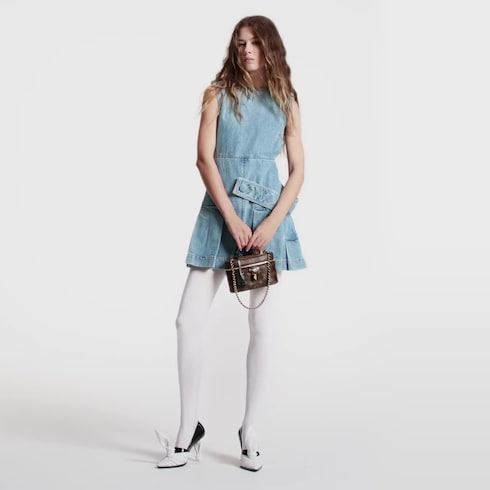 กระเป๋ารุ่น Vanity Chain Pouch จาก Monogram แคนวาสสะท้อนจิตวิญญาณแห่งการเดินทางที่ได้แรงบันดาลใจมาจากหีบรุ่น Vanity อันเลอค่าในอดีต กระเป๋าเรียบหรูเพรียวบางมาพร้อมหูจับด้านบนแต่งขอบหนังและสายโซ่ถักที่สามารถถอดออกได้ เผยดีเทลอันเป็นเอกลักษณ์โดดเด่นทั้งแม่กุญแจสลักอักษรย่อ LV และที่ห้อยกุญแจหนัง