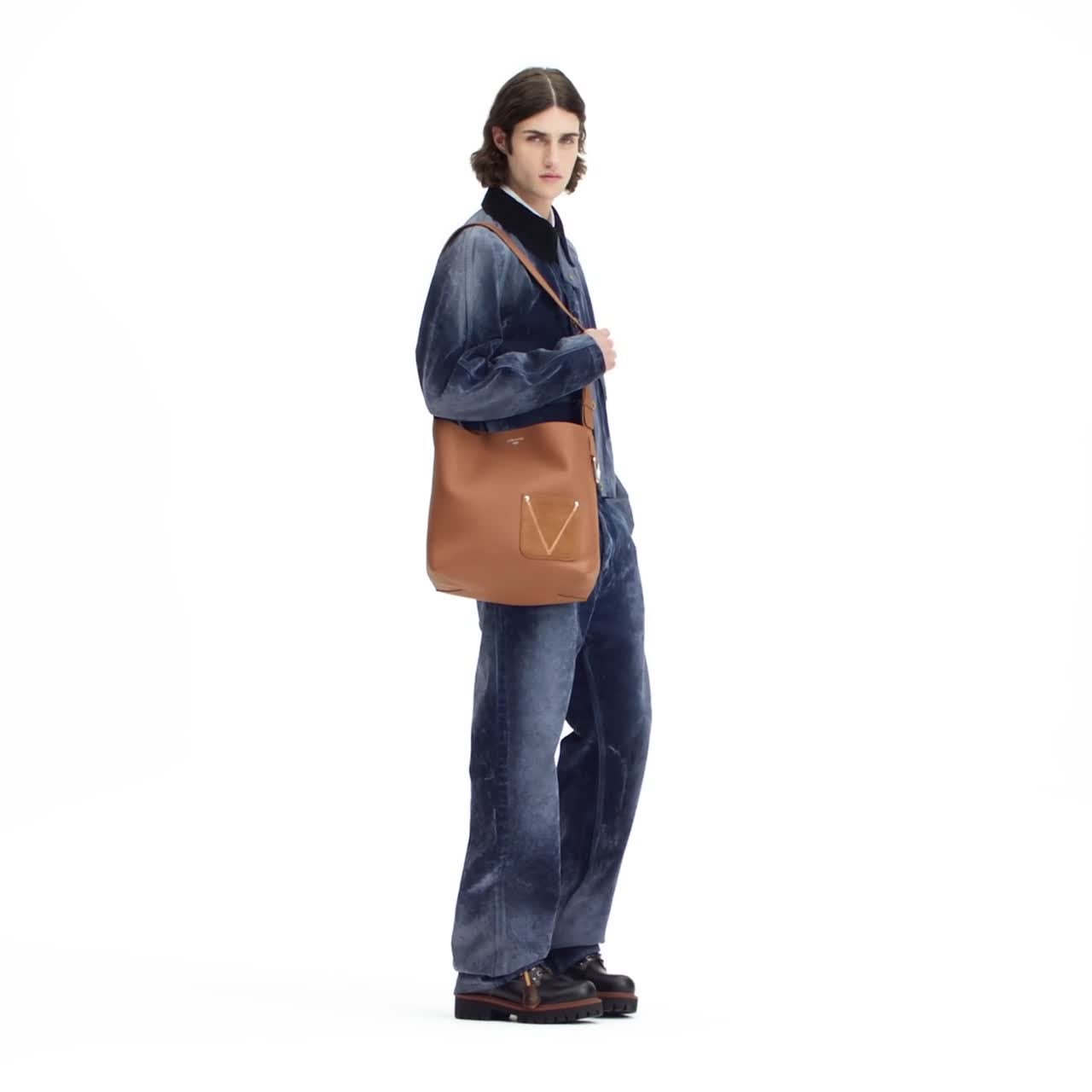 กระเป๋าทรง Hobo รุ่น Verso หนังลูกวัว LV Touch ผสานความหรูหราเข้ากับสไตล์เปี่ยมฟังก์ชัน ดีไซน์ใส่ได้สองด้านมอบสองลุคที่แตกต่างอันเป็นเอกลักษณ์โดดเด่น ด้านหนึ่งเป็นหนังลายเกรนเนื้อเรียบ แมตช์ลงตัวกับด้านหนังกลับสีเดียวกัน แต่ละด้านประดับช่องกระเป๋าพร้อมปักลายตัวอักษร V อันเป็นเอกลักษณ์สะดุดตา เสริมฟังก์ชันด้วยกระเป๋าเพาช์หนังกลับถอดออกได้ เพิ่มทางเลือกการใช้งานในทุกโอกาส