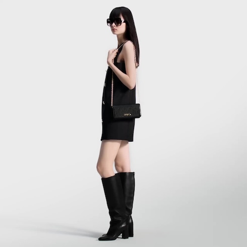กระเป๋ารุ่น Wallet On Chain Lily รังสรรค์จากหนัง Monogram Empreinte ลายเกรนเนื้อนุ่ม กระเป๋ามีฝาพับใบเล็กเหมาะสำหรับพกพาสิ่งของจำเป็นตั้งแต่เช้าจรดเย็น ผสานรูปทรงสี่เหลี่ยมทันสมัยเข้ากับลุคเรโทรเรียบหรู เติมเต็มความลงตัวด้วยฮาร์ดแวร์สีทอง แผ่นโลหะสลักสัญลักษณ์หลุยส์ วิตตองแสนสะดุดตา รวมถึงสายโซ่ประดับชาร์ม LV Circle แบบปรับความยาวและถอดออกได้