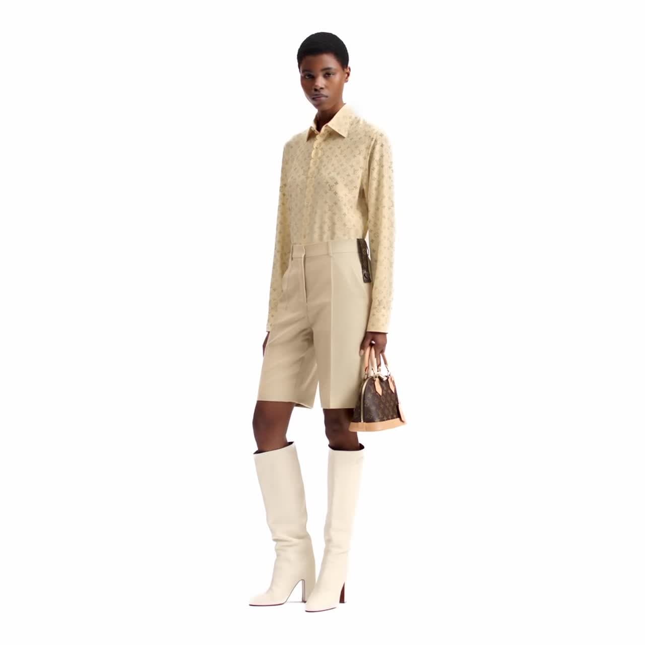 เสื้อเชิ้ตทรงตรงสุดสมาร์ทรับซัมเมอร์สวมใส่ได้หลายโอกาสรังสรรค์จากผ้าไหม Crepe de Chine นุ่มลื่นในเฉดสีประจำฤดูกาล เสื้อพิมพ์ลาย Washed Monogram ไอคอนิกทั้งตัวให้สัมผัสบางเบาดุจภาพฝัน พร้อมประดับกระดุมเอฟเฟ็กต์ไข่มุกหรูหรางดงาม