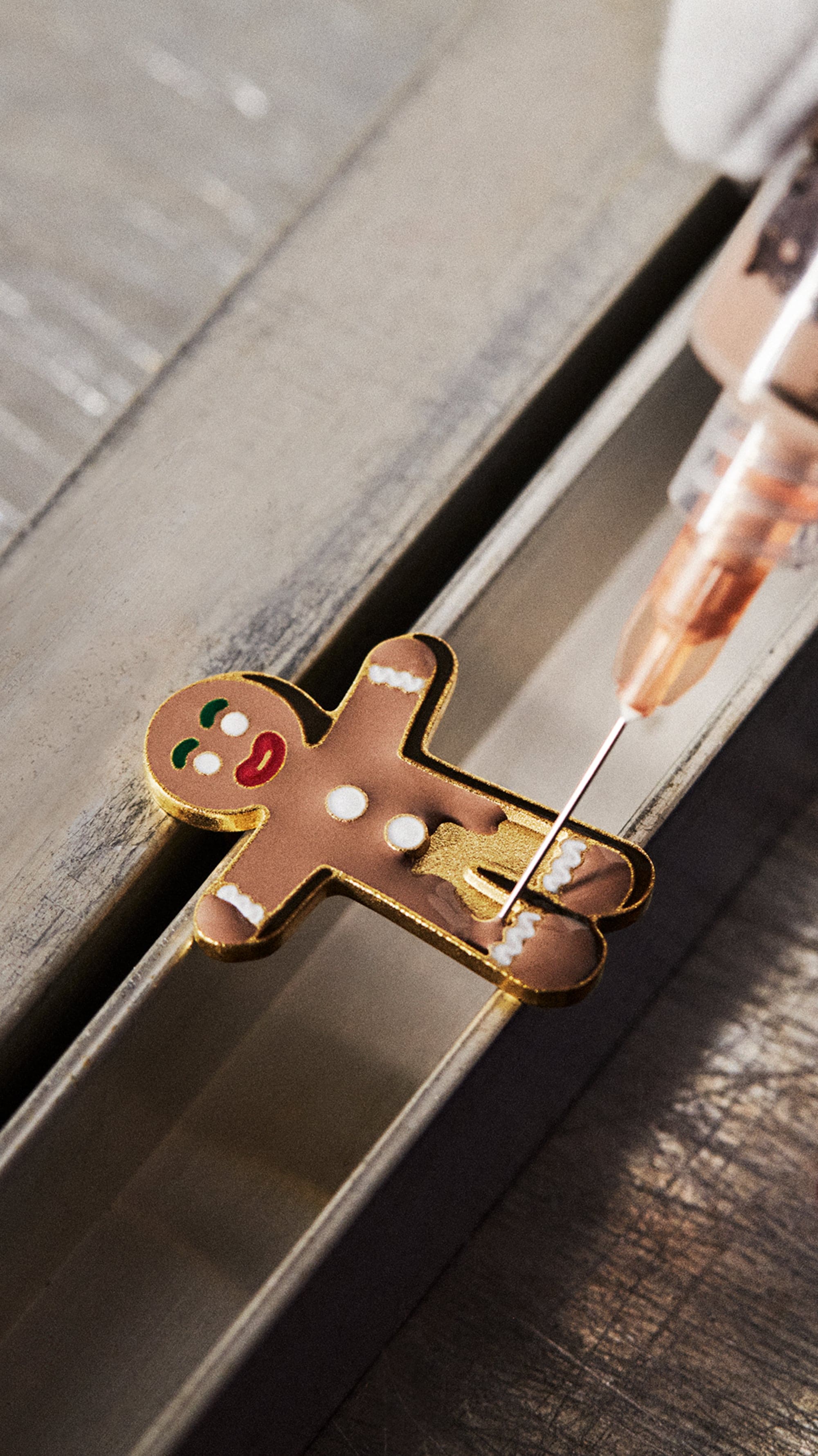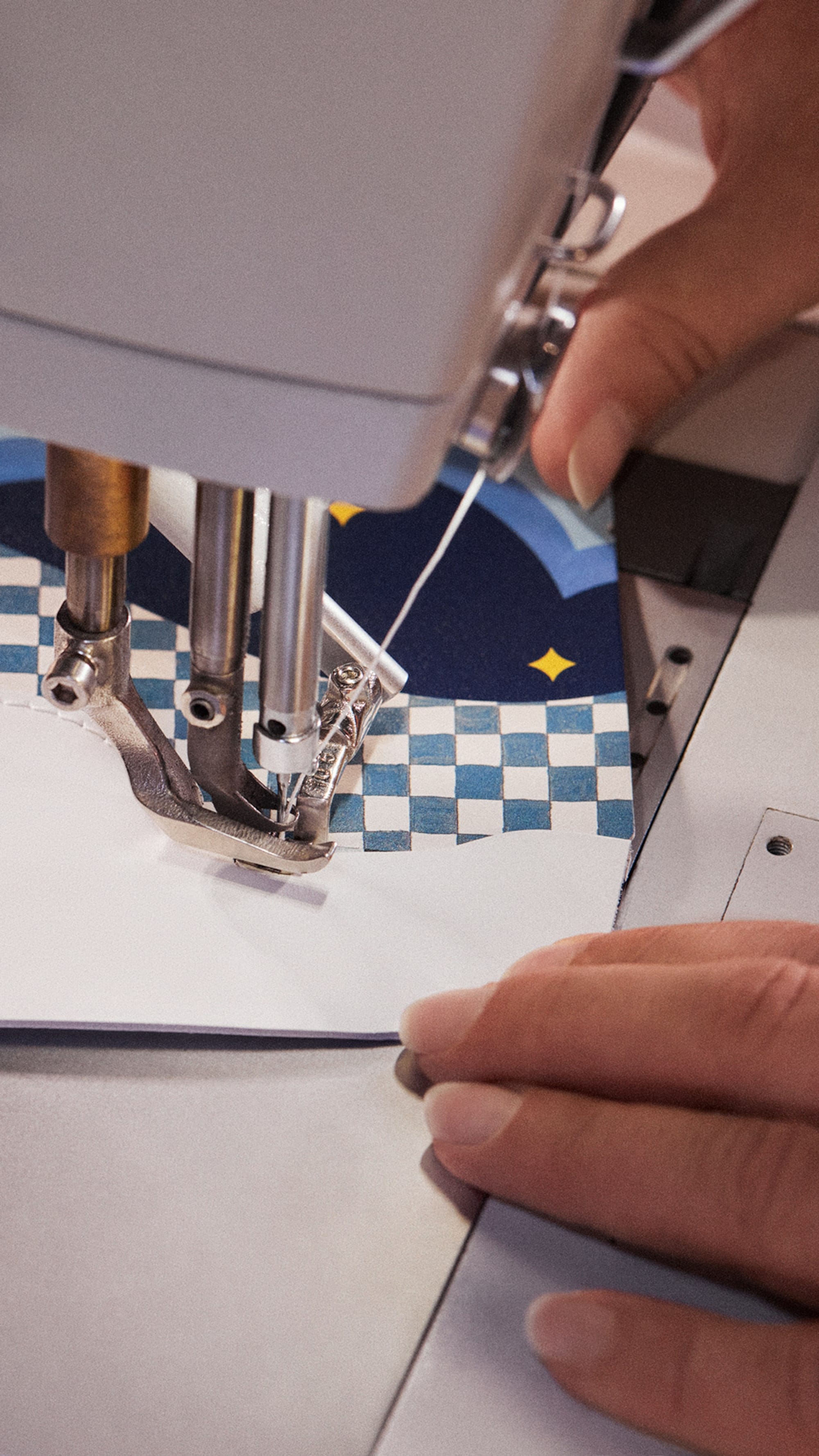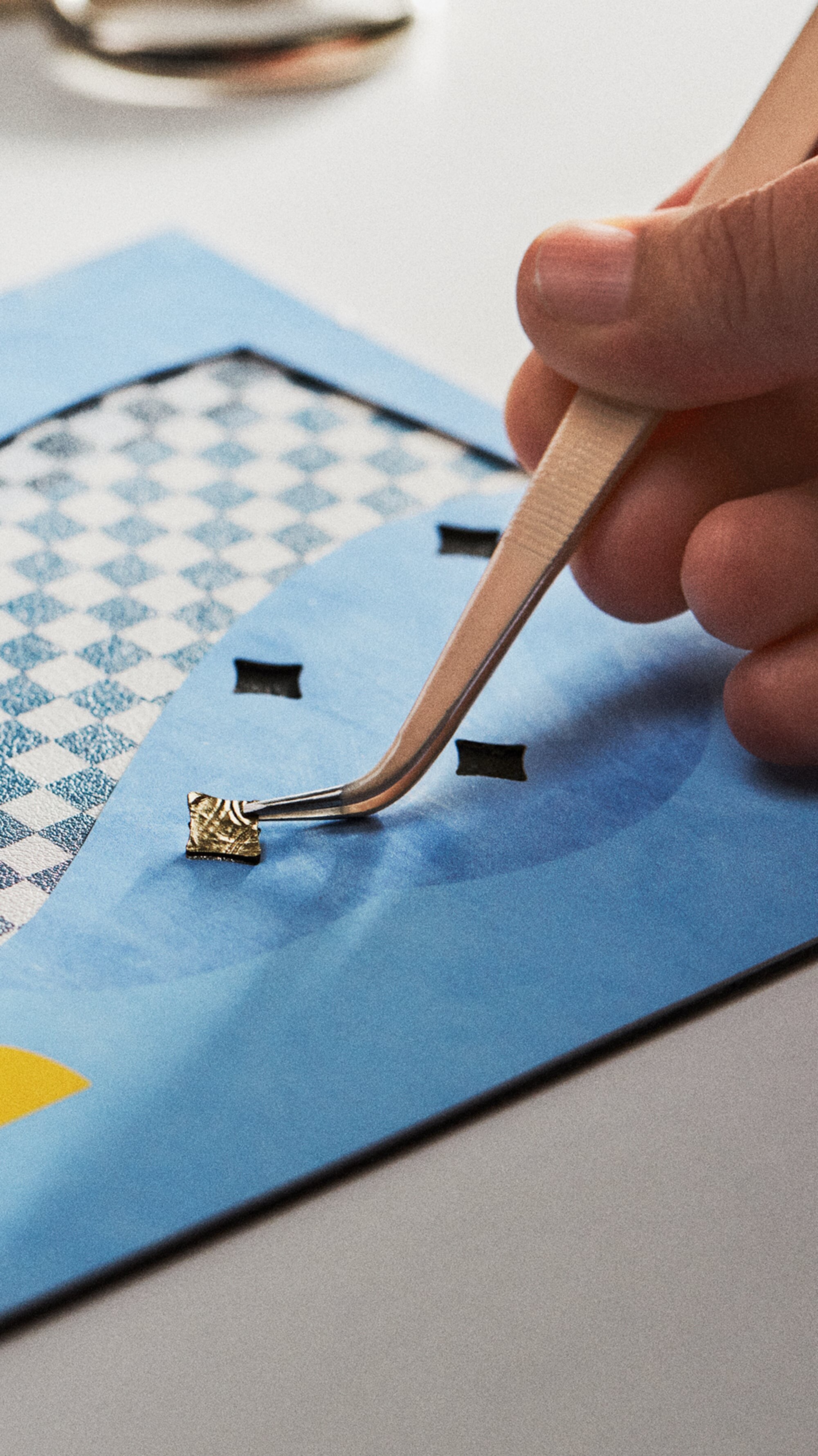 วัสดุของกระเป๋า Capucines ที่นุ่มนวลทับซ้อนเป็นเลเยอร์ด้วยวัสดุหนังสีมิดไนท์บลูที่เงางามในรูปแบบของแพทช์เวิร์คสีสันสดใสเปี่ยมไปด้วยชีวิตชีวา พร้อมการตกแต่งที่มีลูกเล่นสวยแปลกตาเพื่อรังสรรค์กระเป๋าสุดไอคอนิกให้กลายเป็นขนมหวานที่ชวนให้ลิ้มลอง โดยมีดีไซน์หูจับกระเป๋าในรูปแบบของลูกกวาดไม้เท้าสีขาวสลับแดงที่สมบูรณ์แบบ "ฉันประทับใจมากกับรายละเอียดที่ปรากฏออกมาเป็นกระเป๋าใบนี้ ไม่ว่าจะเป็นลูกกวาดรสมิ้นต์ที่ทำจากเรซินไปจนถึงขนมปังขิงเคลือบอินาเมลที่มี LV Monogram Flower ประดับอยู่" - Ziping Wang