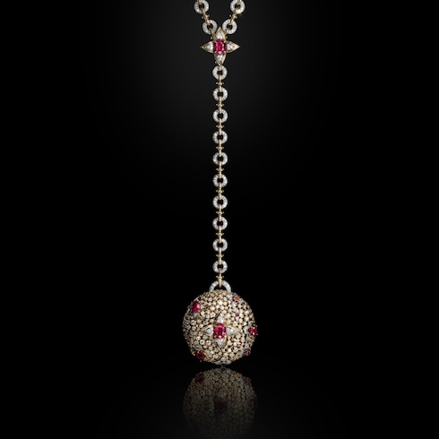 Splendeur ถ่ายทอดศิลปะของงานไม้ลวดลายดอกไม้ที่เปี่ยมด้วยความเชี่ยวชาญซึ่งเลียนแบบเค้าโครงการออกแบบภายในที่หรูหราสง่างามดุจบทกวีแห่ง Monogram Flower ที่เป็นไอคอนิก ผลงานการรังสรรค์จิวเวลรี่ที่วิจิตรบรรจงซึ่งถ่ายทอดผ่านอัญมณีทับทิมเลอค่าสีสันสดใสกว่า 110 เม็ดสะท้อนช่วงเวลาที่เปี่ยมด้วยเสน่ห์ดึงดูด โดยมีดีไซน์การฝังอัญมณีที่งดงามตระการตา ท่ามกลางการจัดเรียงอัญมณีสุดยิ่งใหญ่ในการรังสรรค์ผลงานเครื่องประดับอันทรงคุณค่า