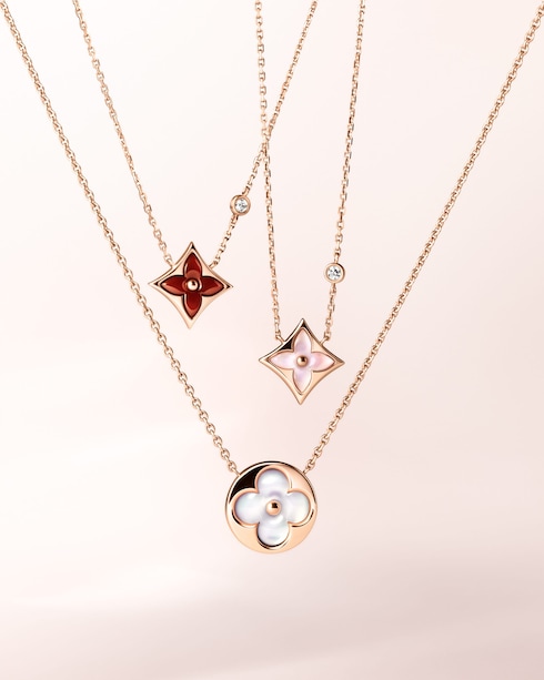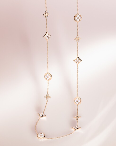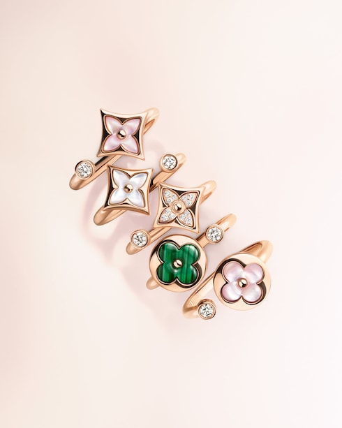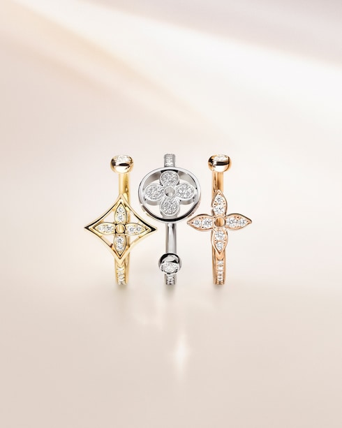 ผลงานรังสรรค์อันหรูหราที่เปี่ยมไปด้วยเสน่ห์ของ Monogram Flower สุดคลาสสิกและปรับรูปทรงให้มีกลิ่นอายความคอนเทมโพรารี่ พร้อมบรรจงฝังอัญมณีตกแต่งต่างๆ ลงในตัวเรือนทองเพื่อให้เกิดความแตกต่างที่น่าสนใจทั้งในด้านสีสันและความตื้นลึกของชิ้นงาน