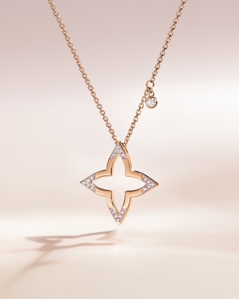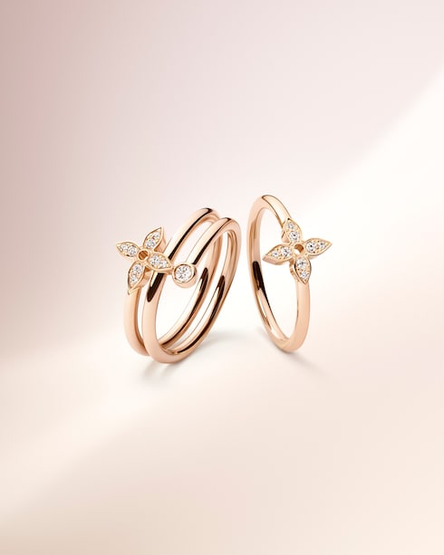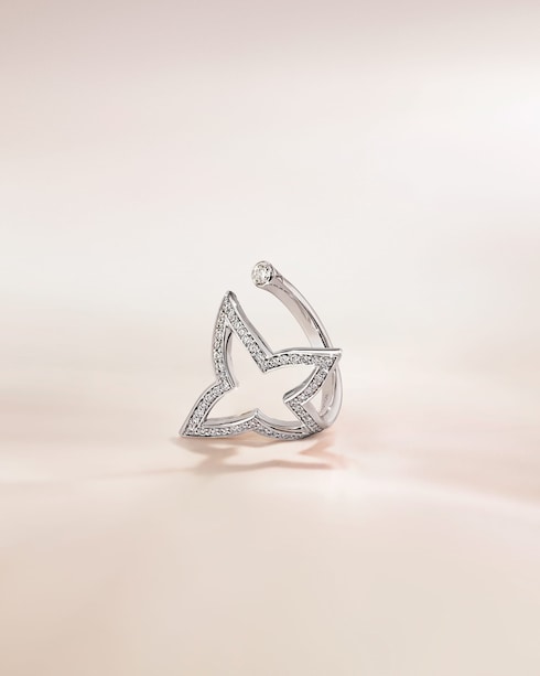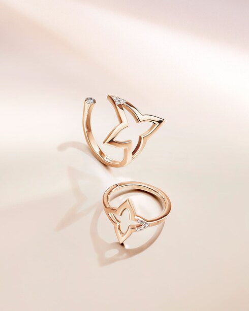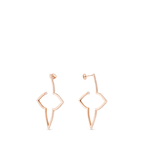 ความโดดเด่นจากเส้นสายละมุนตาที่ลากรวมกันกลายเป็นทรง Monogram Flower นี้รังสรรค์ขึ้นจากโรสโกลด์และไวท์โกลด์ พร้อมประดับเพิ่มความระยิบระยับด้วยเพชรส่องประกาย เพื่อเพิ่มความน่าสนใจให้กับความความงามแห่งสัญลักษณ์ที่สืบทอดต่อกันมาของหลุยส์ วิตตอง