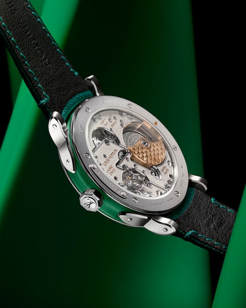 นาฬิการุ่น Louis Vuitton Escale Malachite โดดเด่นด้วยลายริ้วแร่เลอค่าที่ละเอียดประณีตเผยให้เห็นโทนสีเขียวเข้มและชั้นหินที่หลากหลาย นาฬิกาขนาด 40 มม. แต่ละเรือนที่ใช้กลไก LFT023 ประดับด้วยอัญมณีเลอค่าที่ผ่านการตกแต่งอย่างพิถีพิถันด้วยเทคนิคการขัดเงาที่ละเอียดประณีตเพื่อเผยประกายแห่งความงดงามอย่างสมบูรณ์แบบ