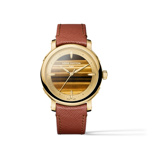 นาฬิการุ่น Louis Vuitton Escale Tiger’s Eye เปิดมิติใหม่ที่เพิ่มความงดงามอย่างลุ่มลึกของอัญมณีเลอค่าที่นับเป็นครั้งแรกของคอลเลกชันในการใช้เยลโลว์โกลด์ นาฬิกาที่รังสรรค์ขึ้นจากไทเกอร์อายที่คัดเลือกมาอย่างพิถีพิถันสร้างพื้นผิวต่อเนื่องจากหน้าปัดสู่ตัวเรือนตรงกลาง ลวดลายของริ้วโทนอบอุ่นได้รับการปรับแต่งมาอย่างประณีตบรรจง เพื่อถ่ายทอดเส้นสายที่ตัดกันอย่างกลมกลืนและความเข้มของสีได้อย่างสมดุล