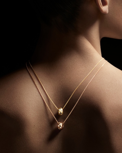 ต่างหูและจี้ได้รับแรงบันดาลใจมาจากทรงเรขาคณิต มาพร้อมกับความลื่นไหลเปี่ยมเสน่ห์ที่รังสรรค์จากไวท์โกลด์ เยลโลว์โกลด์ หรือโรสโกลด์ และเพิ่มความสวยงามด้วยลักษณะอันโดดเด่นของเฮาส์