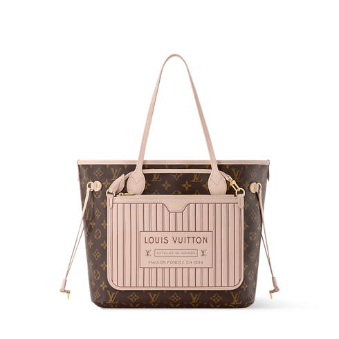 กระเป๋ารุ่น Neverfull ประดับลวดลาย Monogram หรือ Damier สุดไอคอนิก เปรียบได้กับความงดงามที่เหนือกาลเวลาและฟังก์ชันการใช้งานที่ช่วยเสริมเอฟวี่เดย์ลุค ซิกเนเจอร์โมเดลนี้ได้รับการปรับปรุงอย่างต่อเนื่องจนได้เฉดสีที่เป็นเอกลักษณ์และเสน่ห์ที่โดดเด่นตามฤดูกาล